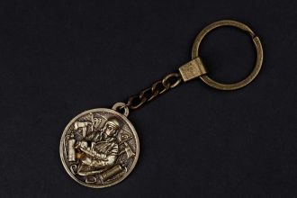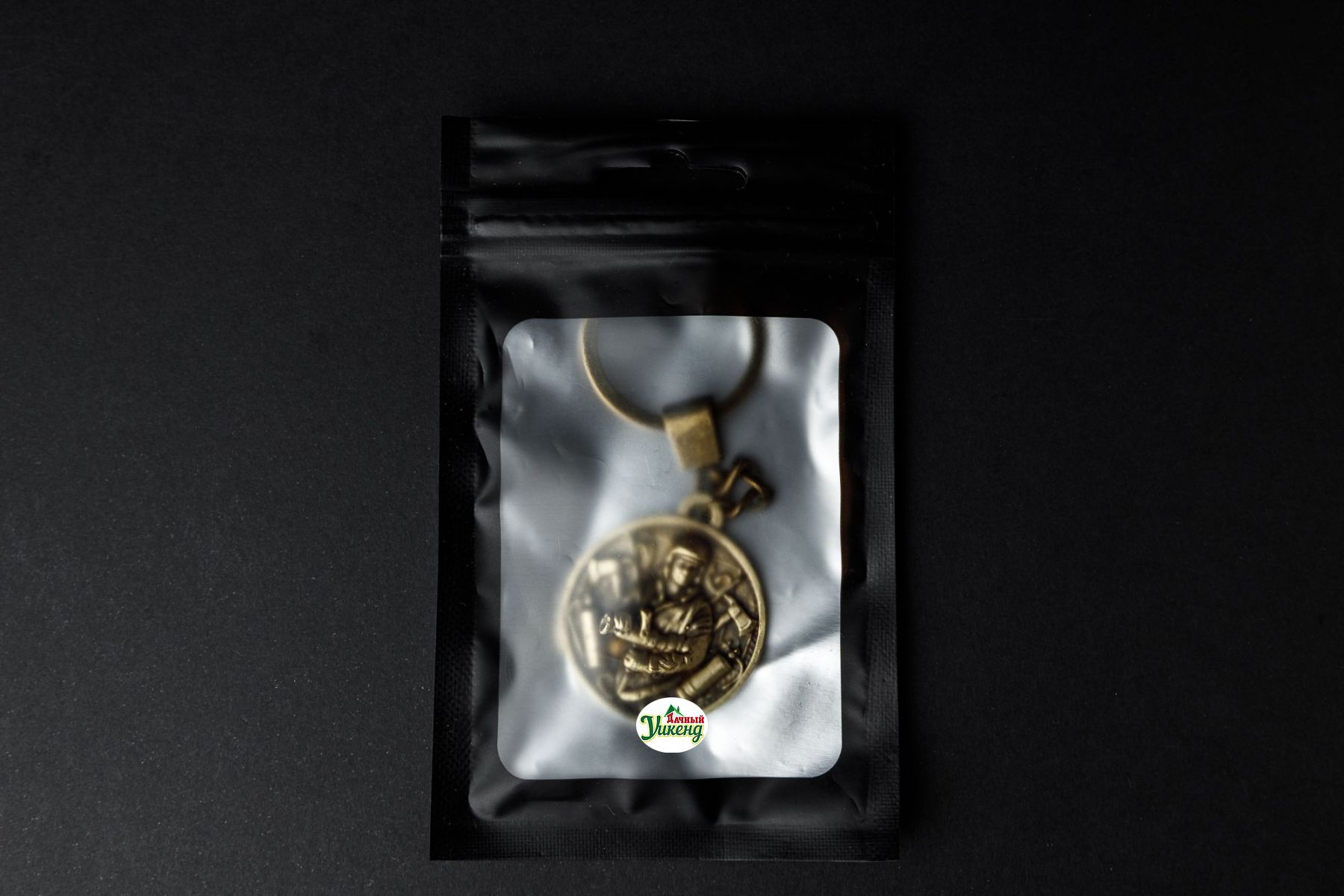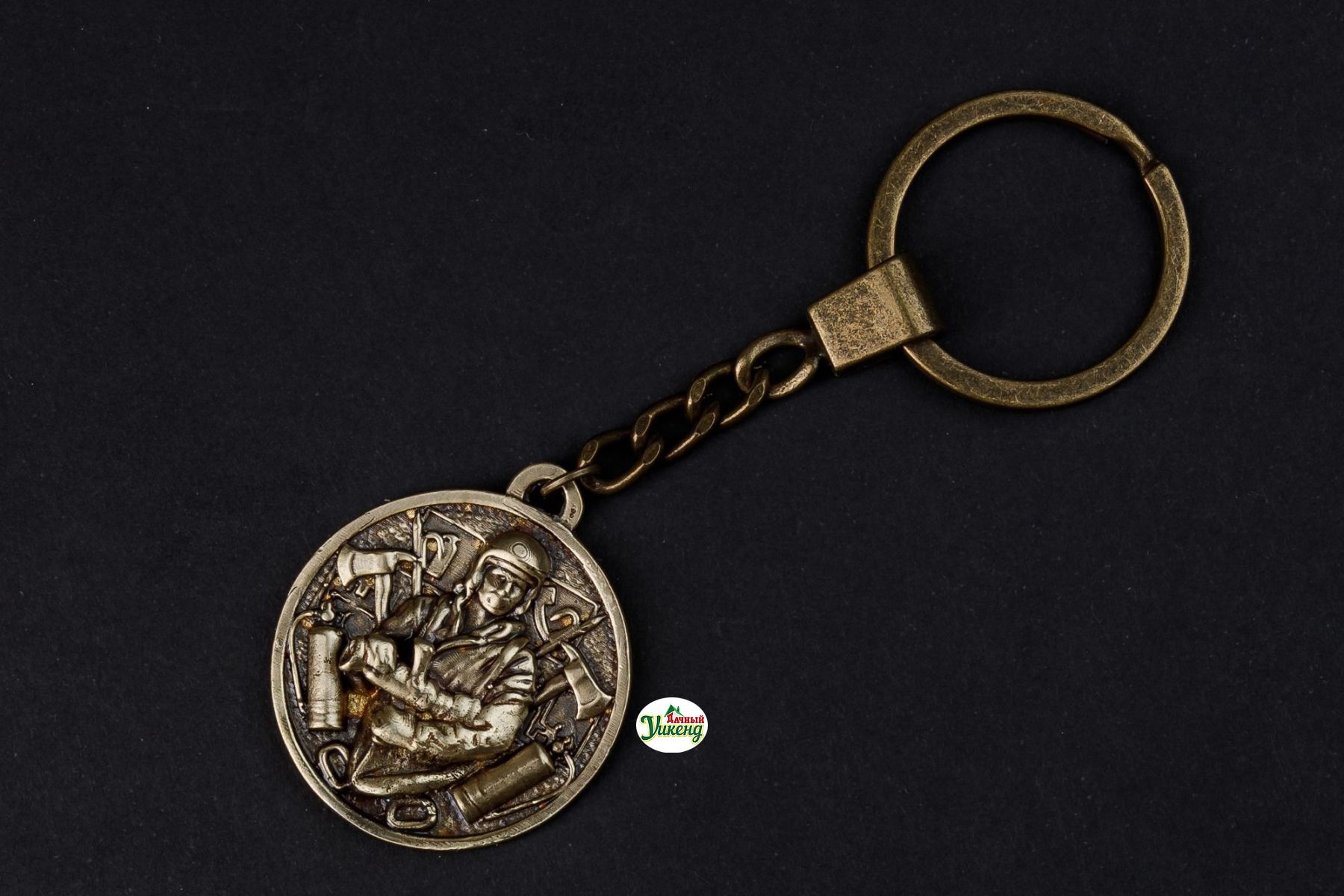 Брелок с бронзовым медальоном, на котором изображен пожарный в спецодежде шлеме – отличный подарок для работника пожарной охраны. Медальон выполнен методом художественного литья. Ручная работа детально передает отдельные элементы изображения – лицо, костюм, брандспойт, топоры.