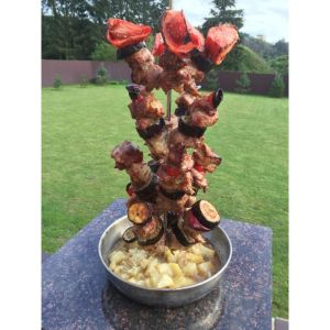 Печёная картошка и овощи гриль, получаются особенно вкусные, т.к. в процессе приготовления пропитываются соками мяса или птицы расположенных на елке.
