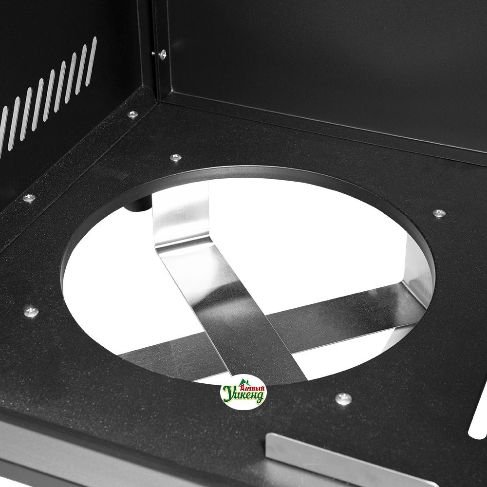 · В крышке установлен отражающий экран, который снижает теплопотери. Такая конструкция позволяет поддерживать высокую температуру в гриле даже в холодную погоду, а также снижает вероятность ожогов, ведь крышка меньше нагревается снаружи.