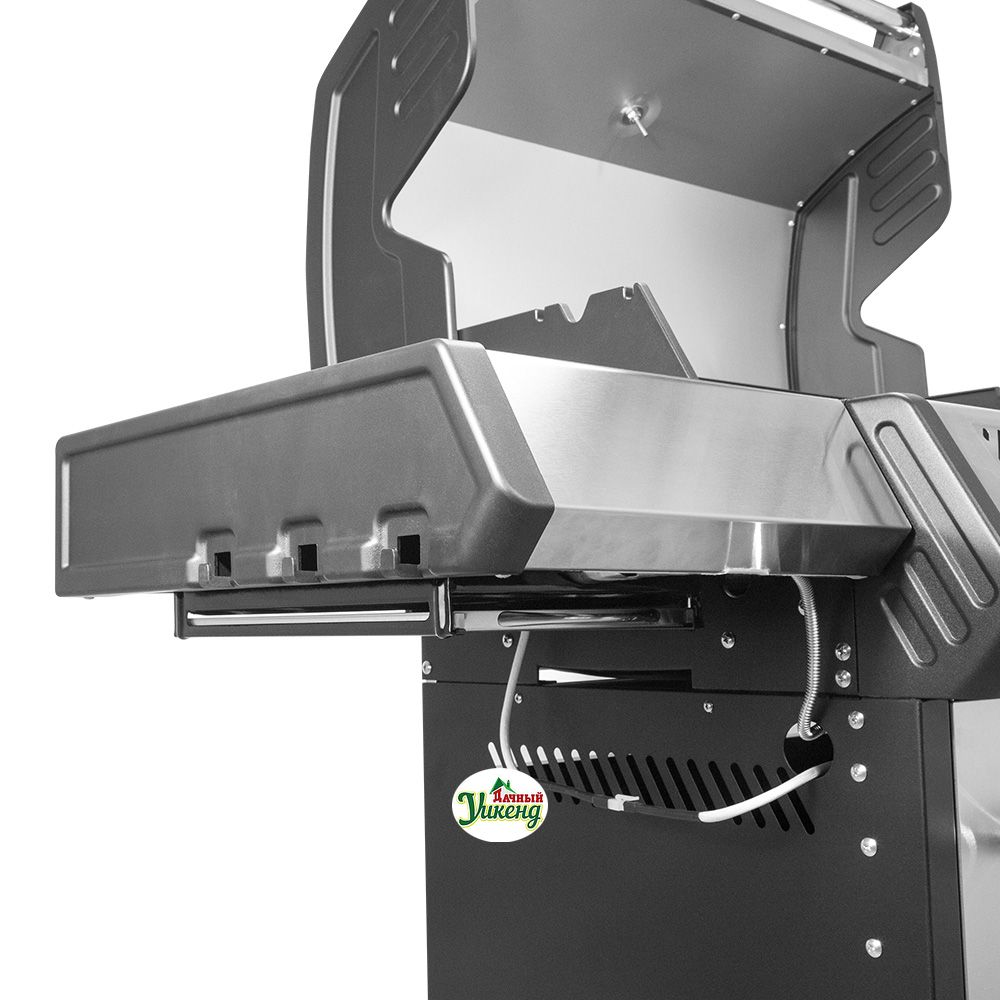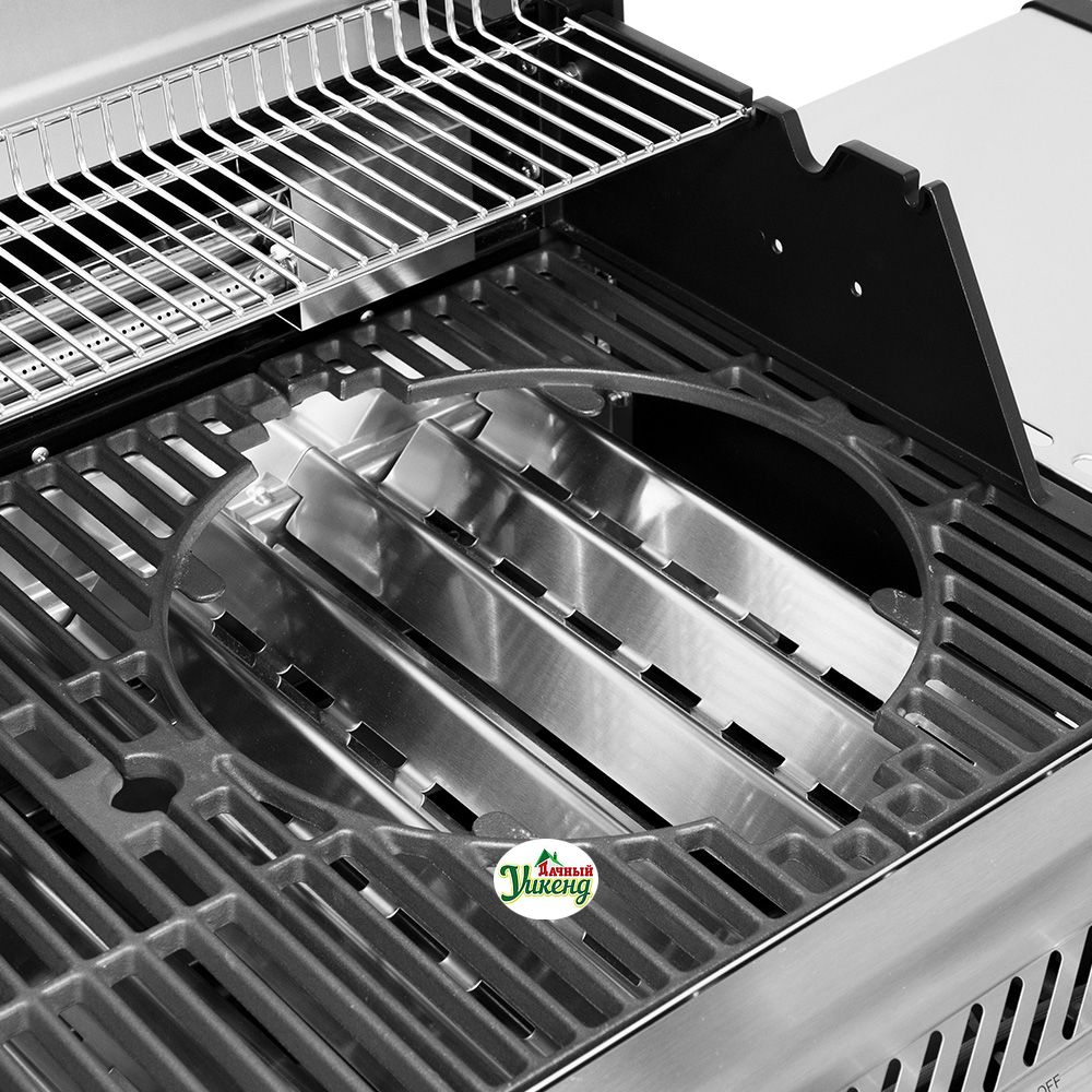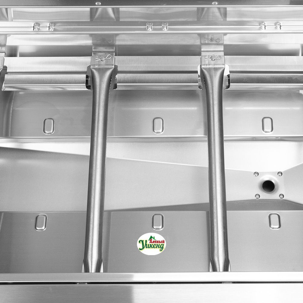 · Каждую горелку защищают рассекатели пламени. Они препятствуют возникновению вспышек пламени, обеспечивают равномерное нагревание и придают блюдам неповторимый аромат барбекю.