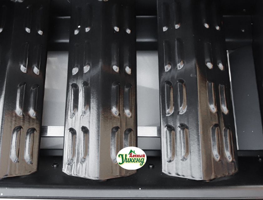 Газовый гриль Gourmet 400 оснащен 4-мя трубчатыми горелками, которые защищают пластины флаволайзеры. Они обеспечивают равномерный нагрев всей жарочной поверхности, а также отводят от горелок стекающий с продуктов сок и жир, снижая тем самым риск возникновения вспышек.Еще одна важная функция флаволайзеров – это придание блюдам вкуса и аромата настоящего барбекю. Раскаленные пластины испаряют капли маринада, сока и жира. Так образуется дымок, который окутывает продукты.