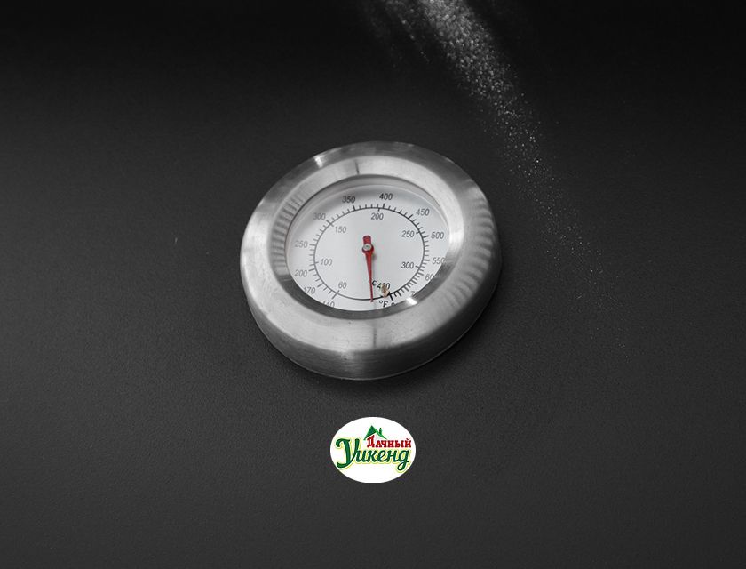 Баранина, свинина, курица – каждому виду мяса требуется своя температура приготовления. Поэтому в крышку Gourmet 400 интегрирован термометр. Он имеет простую конструкцию без электронных элементов и точно не выйдет из строя.Устройство позволяет контролировать температуру в котле. Термометр помогает соблюдать необходимый режим приготовления и вовремя регулировать мощность горения. Делать это просто с помощью ручек управления.