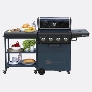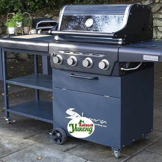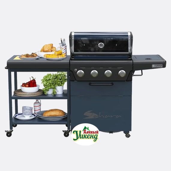 Особенности:Боковая тележка с разделочной доской и мусорным ведром обеспечивает много полезного пространства для приготовления пищи. Ее также можно откатить и использовать в качестве стола. Модульная система жарочной поверхности для приготовления Sahara® Grill Insert System состоит из 3 чугунных решёток с фарфоровым эмалированным покрытием для приготовления пищи имеет высокую производительность, долговечна и легко чистится. Утопленная боковая конфорка – для приготовления пищи в кастрюле и сковороде. Выдвижная решетка для подогрева: сохраняет пищу теплой после приготовления. 4 горелки из нержавеющей стали – с электронной системой зажигания. Котел гриля с эмалевым покрытием и термостойкая крышка с порошковым покрытием, с заглушками из литого аллюминия. Большое смотровое окно и встроенный датчик температуры позволяют контролировать приготовление пищи на любом этапе. Совместимость с вертелом. Большие колеса и ролики с блокировкой – для удобства перемещения. Опускающаяся дверца для облегчения доступа к баллону.