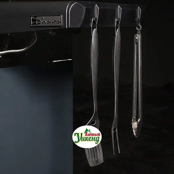 Набор для пикника предназначен для приготовления пищи на открытом воздухе. В набор входят 6 предметов: вилка, лопатка, щипцы, солонка, перечница, сумка-фартук.