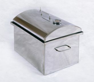Коптильня с термодатчиком из нержавеющей стали "Дымок 500 КТ", изготавливается из листовой стали толщиной 3 мм. Корпус усилен ребрами жесткости. В коптильне две кассетные решетки из нержавеющей стали (2 уровня) и поддон для сбора жира так-же из нержавейки, который вынимается из конструкции кассеты - это большим образом отличает нас от конкурентов. Еще выделим большую особенность, это наличие боковых ручек коптильни!