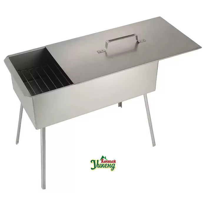 Коптильня с поддоном из нержавеющей стали предназначена для горячего копчения на открытом воздухе. Ей можно пользоваться на даче, взять с собой на рыбалку или в поход.