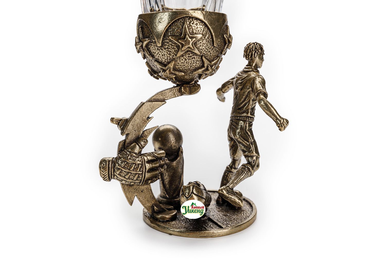 На латунной ножке размещается фигурка футболиста, отлитая с особым мастерством и вниманием к деталям.