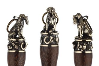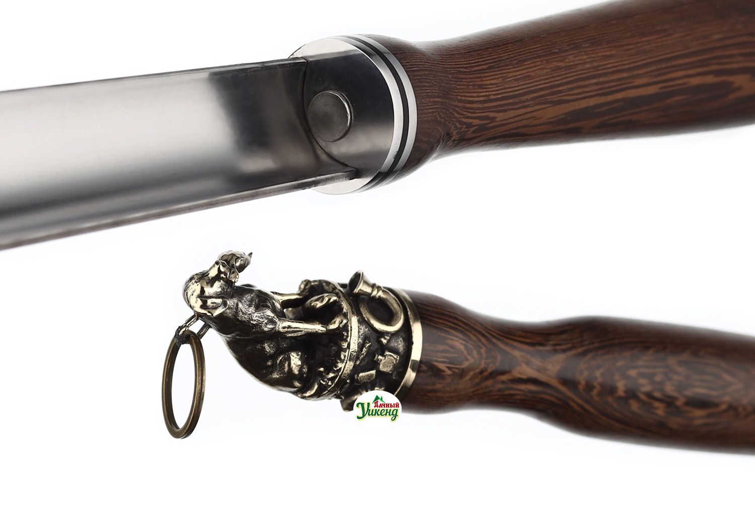 Рукоятка из благородного венге переходит в бронзовый наконечник, выполненный в технике художественного литья.