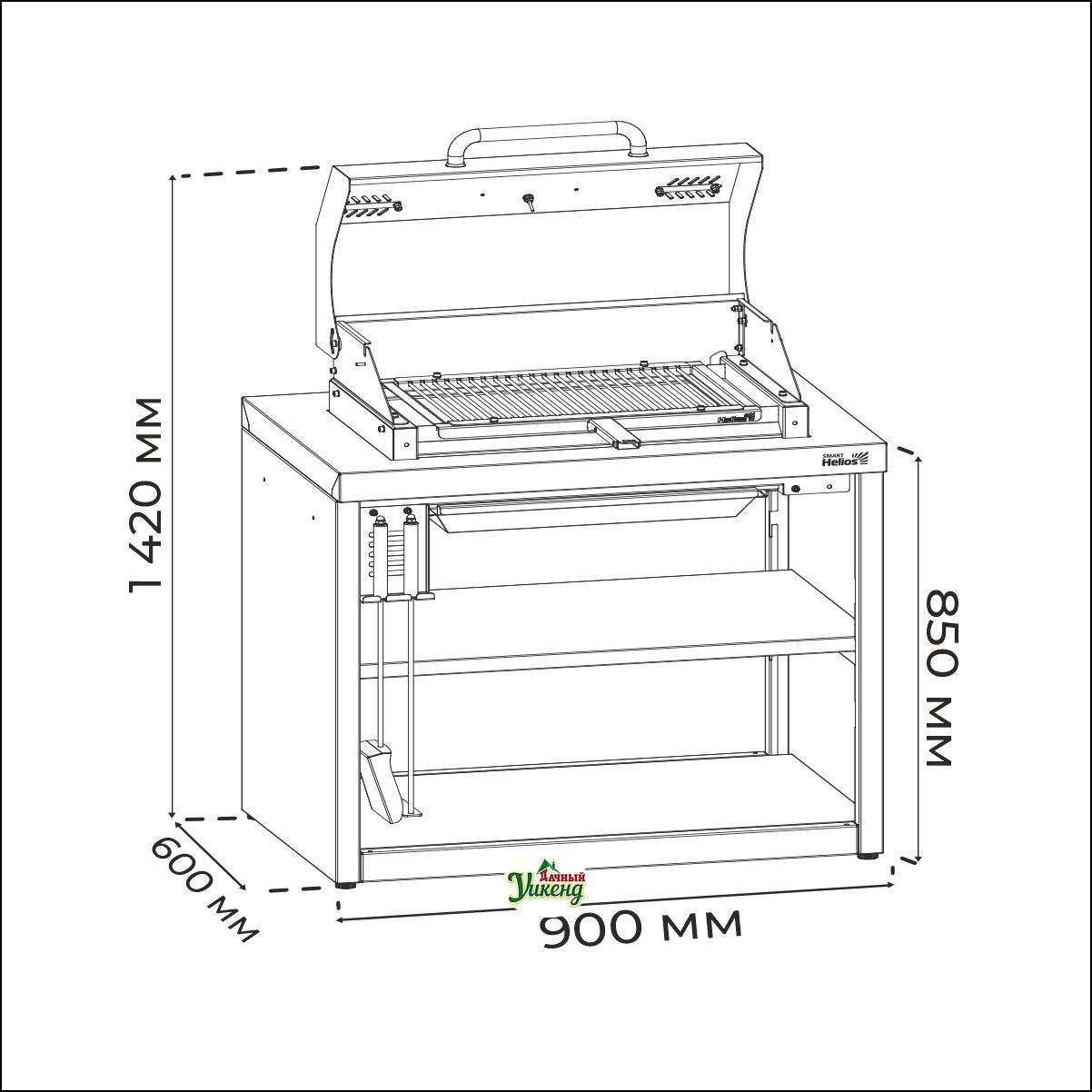 Высота мангала (с закрытой/открытой крышкой мангала):1116/1420 мм