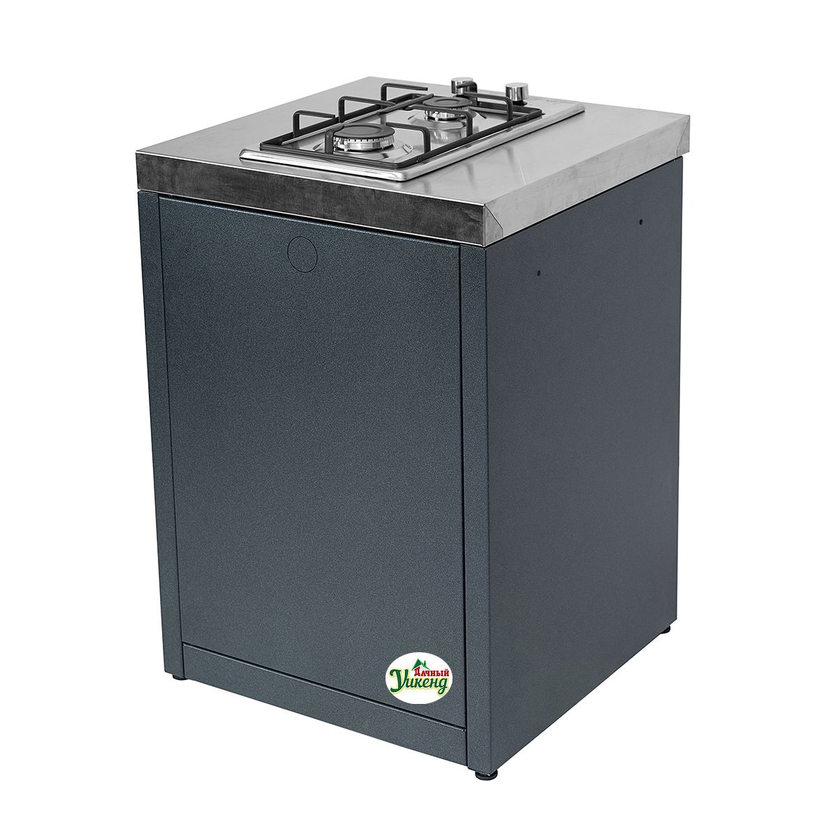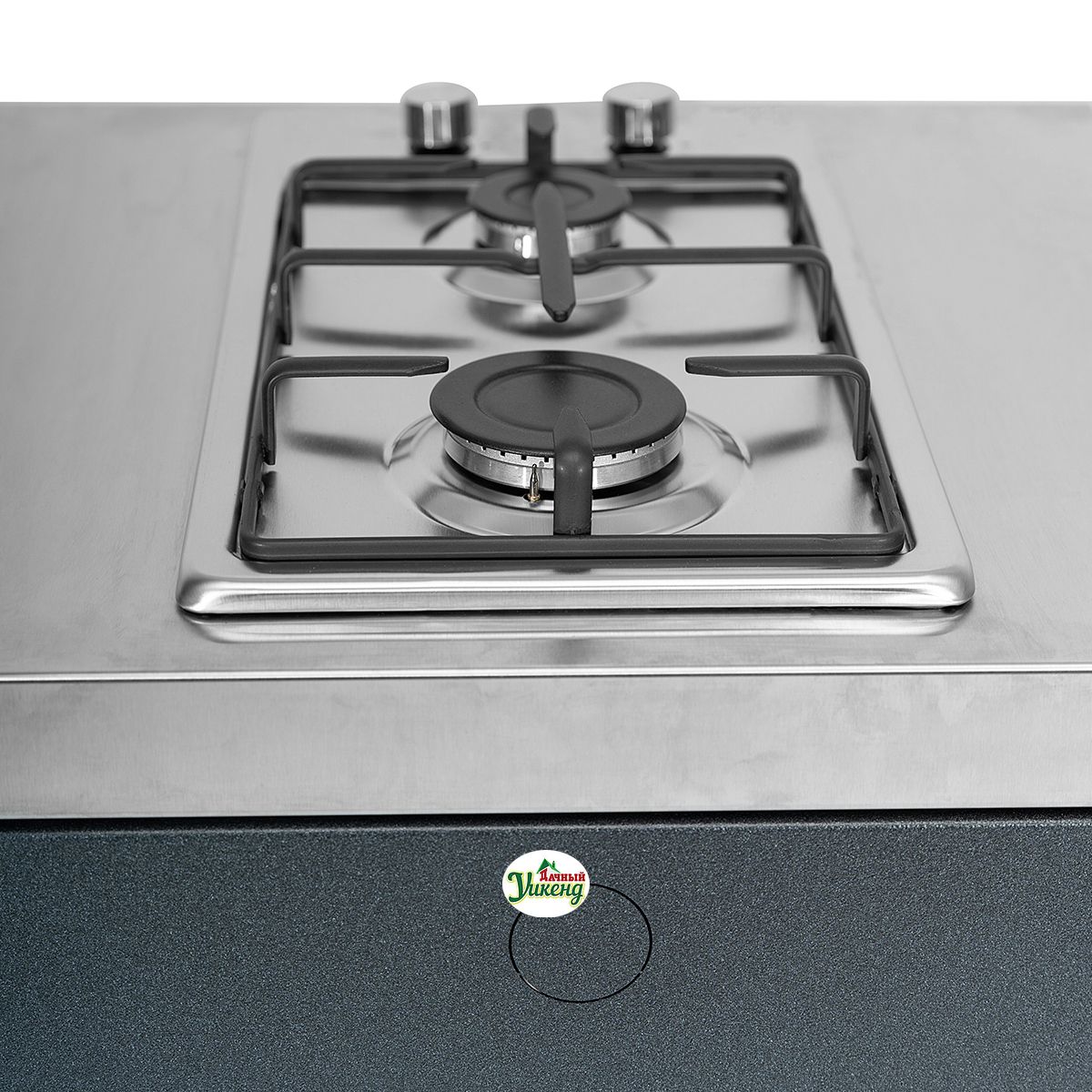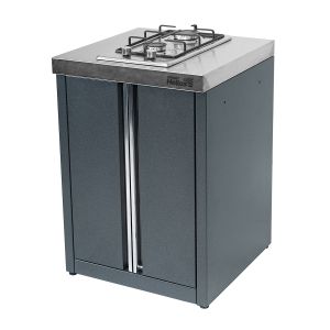 Модификация варочной поверхности включает в себя две конфорки (большая и средняя), поддерживающие решетки, ручки управления газовыми кранами и рабочую плоскость: средняя газовая конфорка - 1,7 кВт, большая газовая конфорка - 2,6 кВт. Высота модуля регулируется с помощью специальных ножек. Каждая деталь модуля от фасадных элементов до столешницы отличается устойчивостью к внешним погодным условиям.
