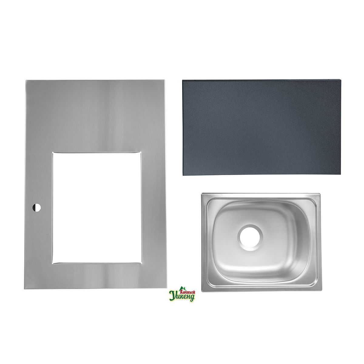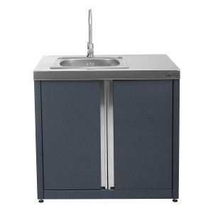 Шкаф с мойкой представляет собой столешницу, изготовленную из пищевой нержавеющей стали и встроенную в нее глубокую мойку. Каркас модуля выполнен из высококачественной стали с прочным полимерным покрытием. Модуль закрывается двумя дверками на магнитных фиксаторах. Высота модуля регулируется с помощью специальных ножек. Каждая деталь модулей, от фасадных элементов до столешницы, отличается устойчивостью к внешним погодным условиям.