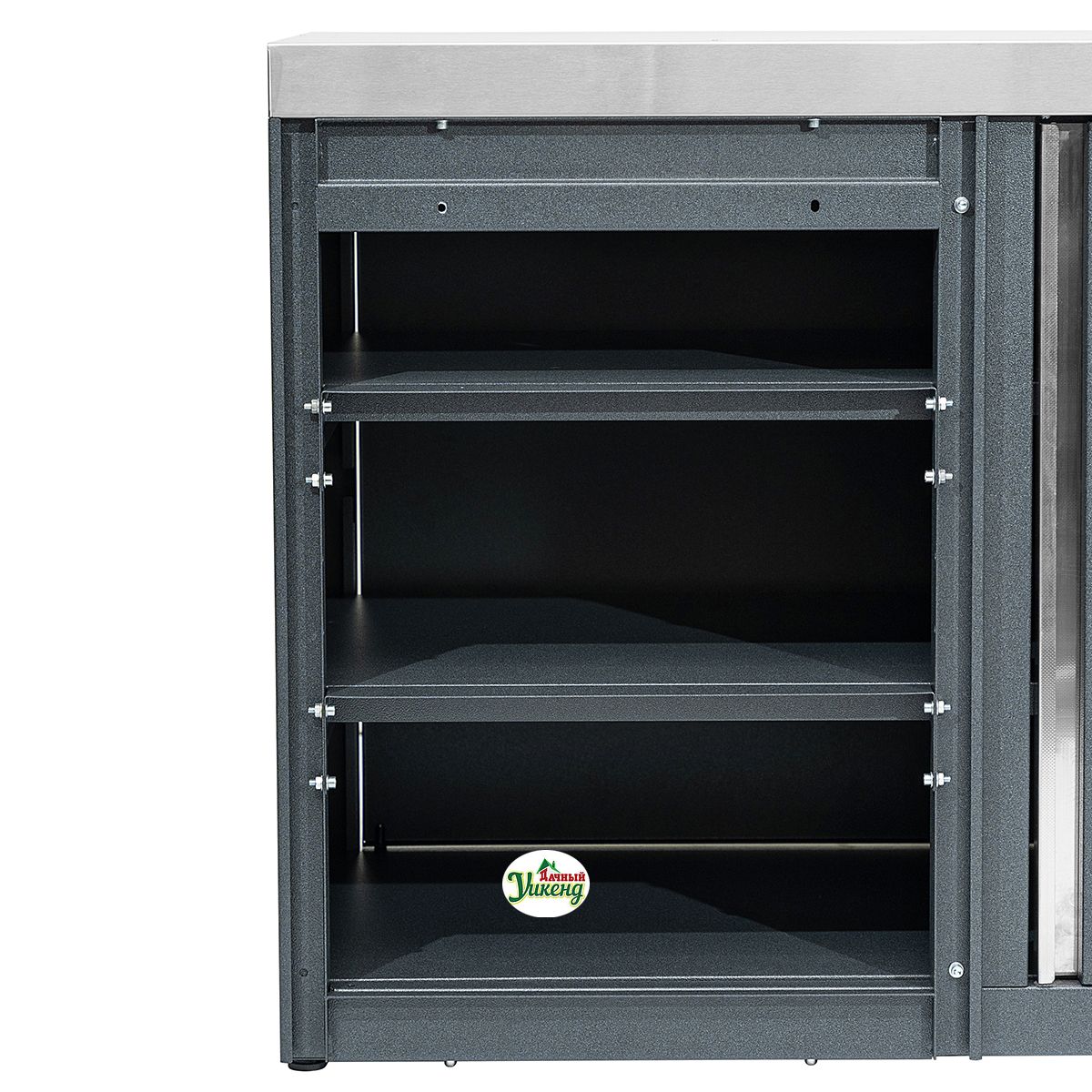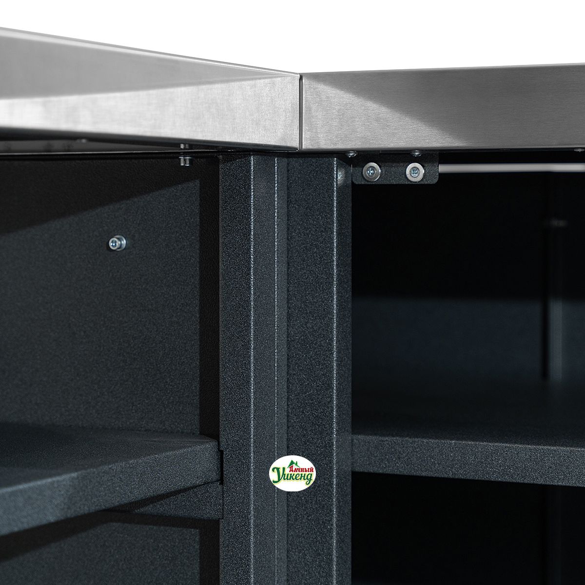 - Для установки нескольких модулей уличной кухни вплотную друг к другу в боковых стенках и в секции модуля предусмотрена дополнительная система креплений.