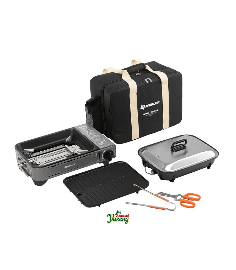 Набор туристический плита газовая в сумке + сковорода и кухонные инструменты