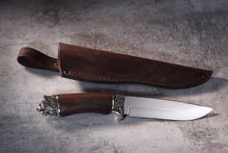 В комплект поставки входит стильный чехол из натуральной кожи, который не только защищает нож, но и подчеркивает статус его владельца.