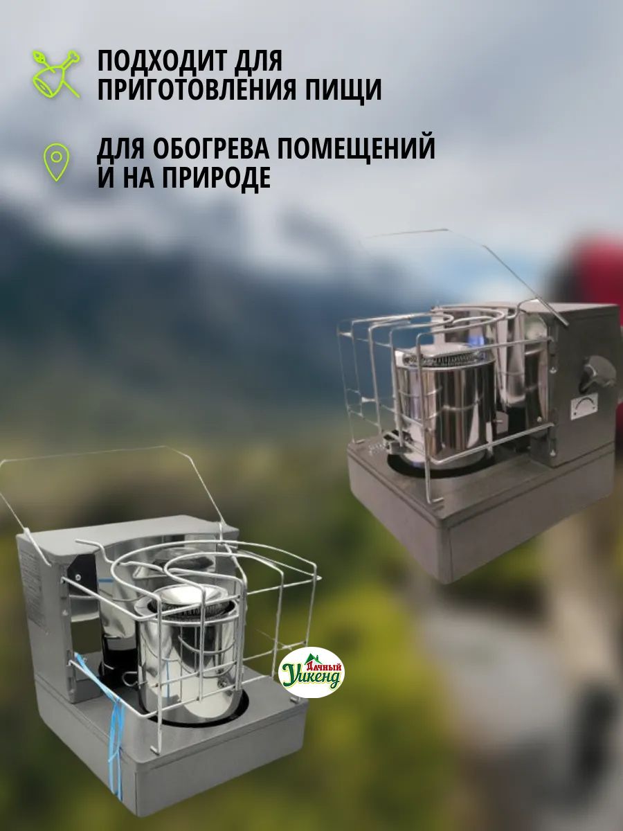 Тепловая мощность жидкотопливного обогревателя 2,5 кВт, время работы на одной заправке более 11 часов, что делает этот примус наиболее экономичным среди электрических и газовых обогревателей.