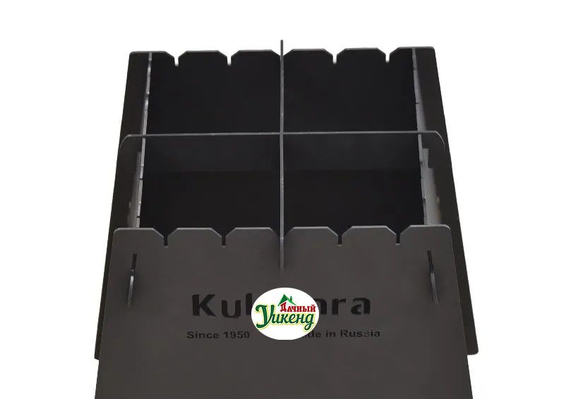 Простая разборная конструкция позволяет быстро собрать печь в походных условиях, а также сэкономить место при хранении и транспортировке.