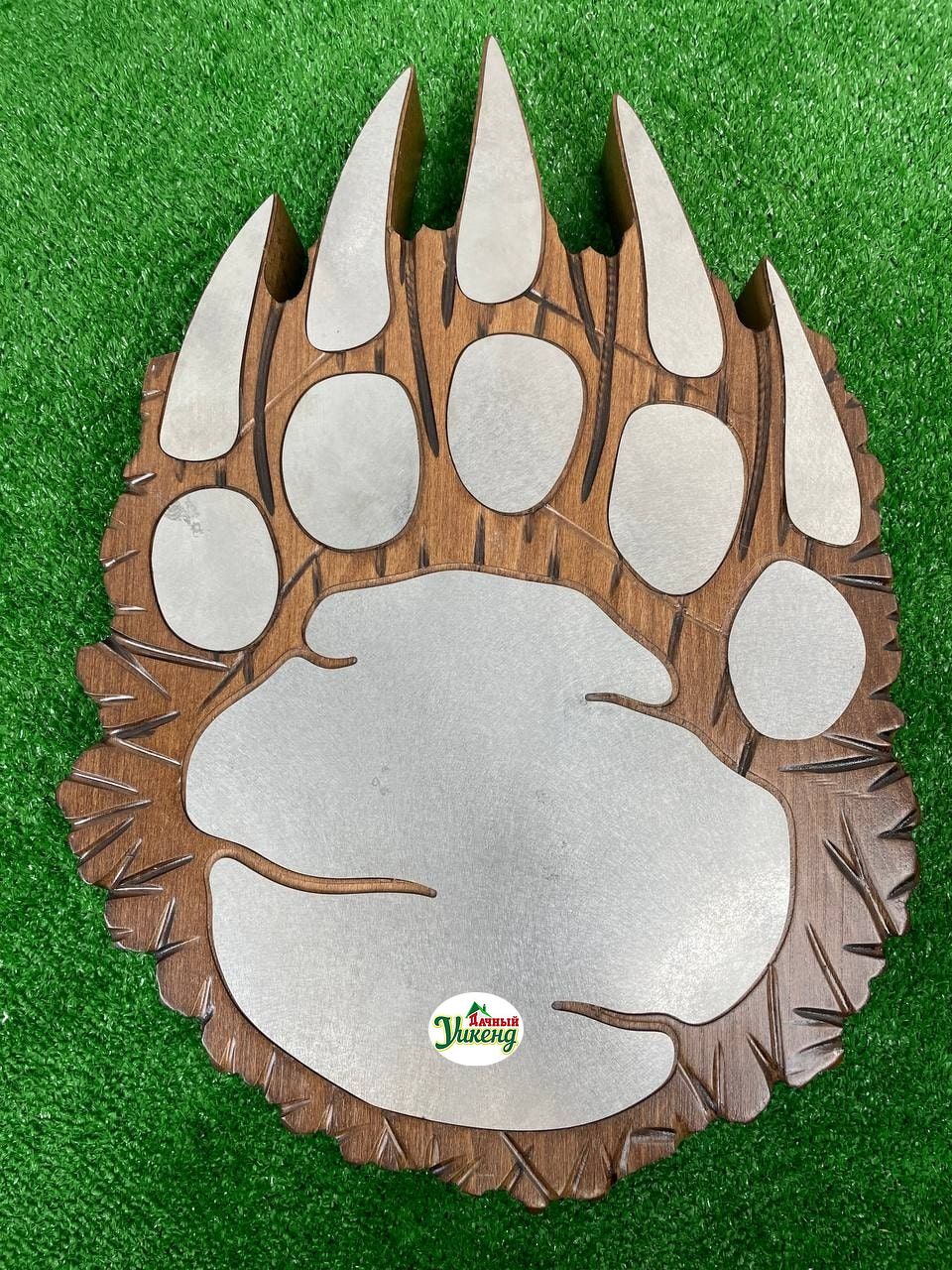 Подставка под горячие блюда в виде медвежьей лапы станет оригинальным дополнением к сервировке Вашего стола. Выигрышное сочетание металла и дерева в необычной форме привлекает к себе внимание. Подставка изготовлена по эскизам нашего дизайнера из крашеного натурального дерева с элементами из нержавеющей стали.