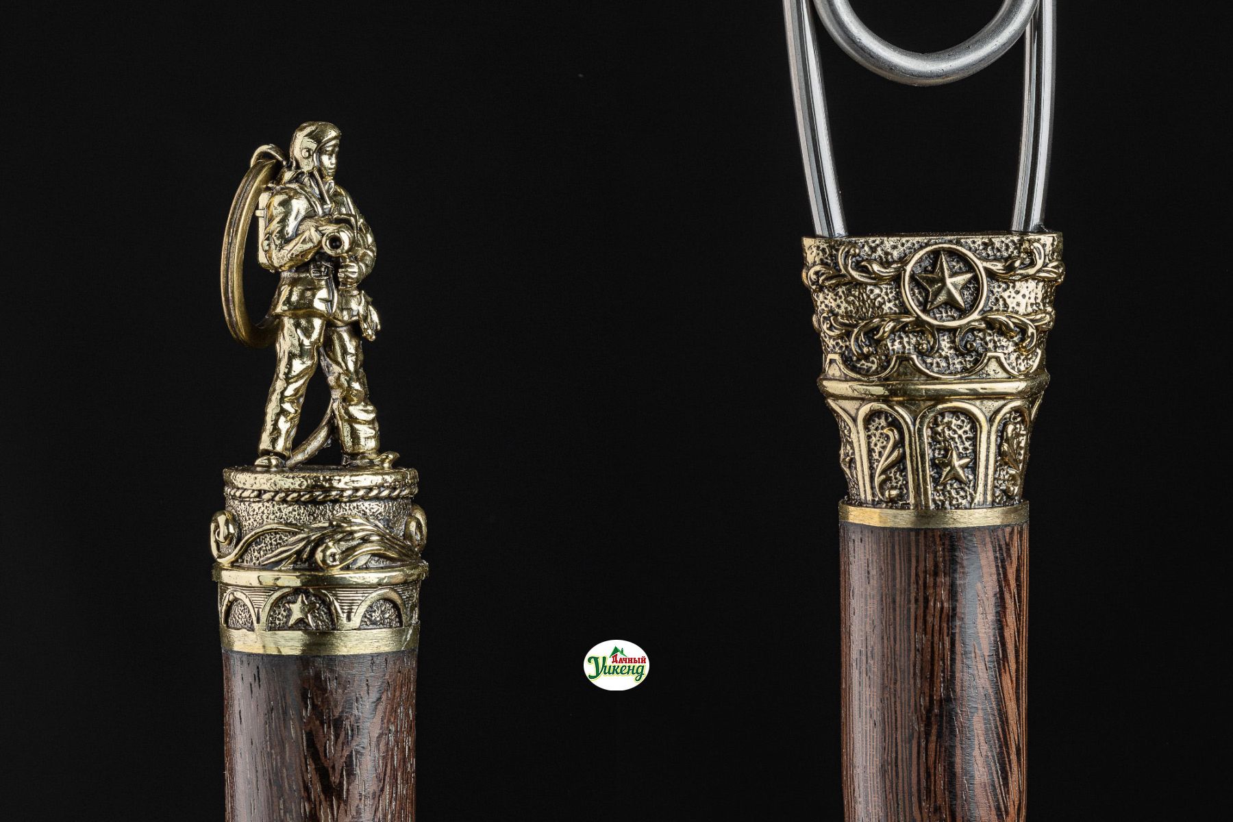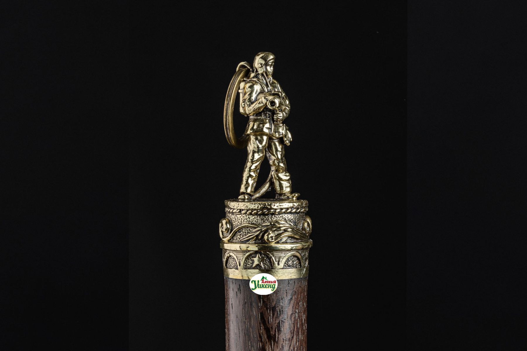 Ему понравится изысканный декор рукоятки из венге – с одной стороны украшенной бронзовой фигуркой пожарного, с другой – декоративной накладкой с изысканным узором.