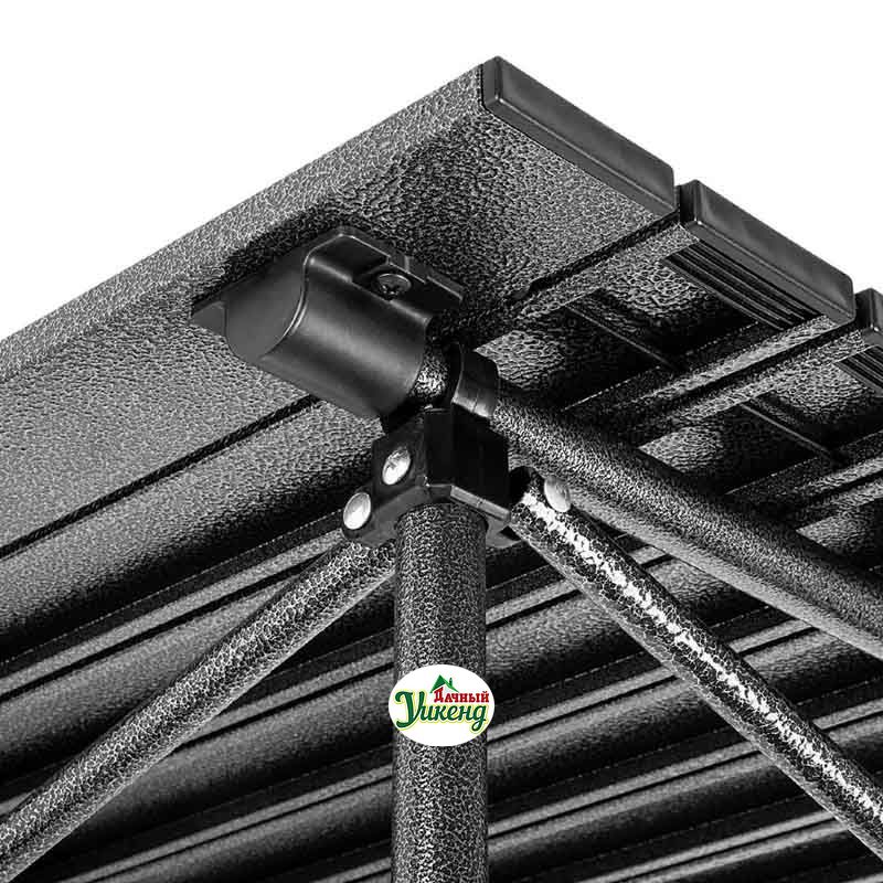 Стальной каркас выдерживает ощутимые нагрузки, а алюминиевая столешница здорово снижает общий вес конструкции для удобства транспортировки. Благодаря совсем небольшим габаритам в сложенном виде стол легко поместится в багажник легкового автомобиля.
