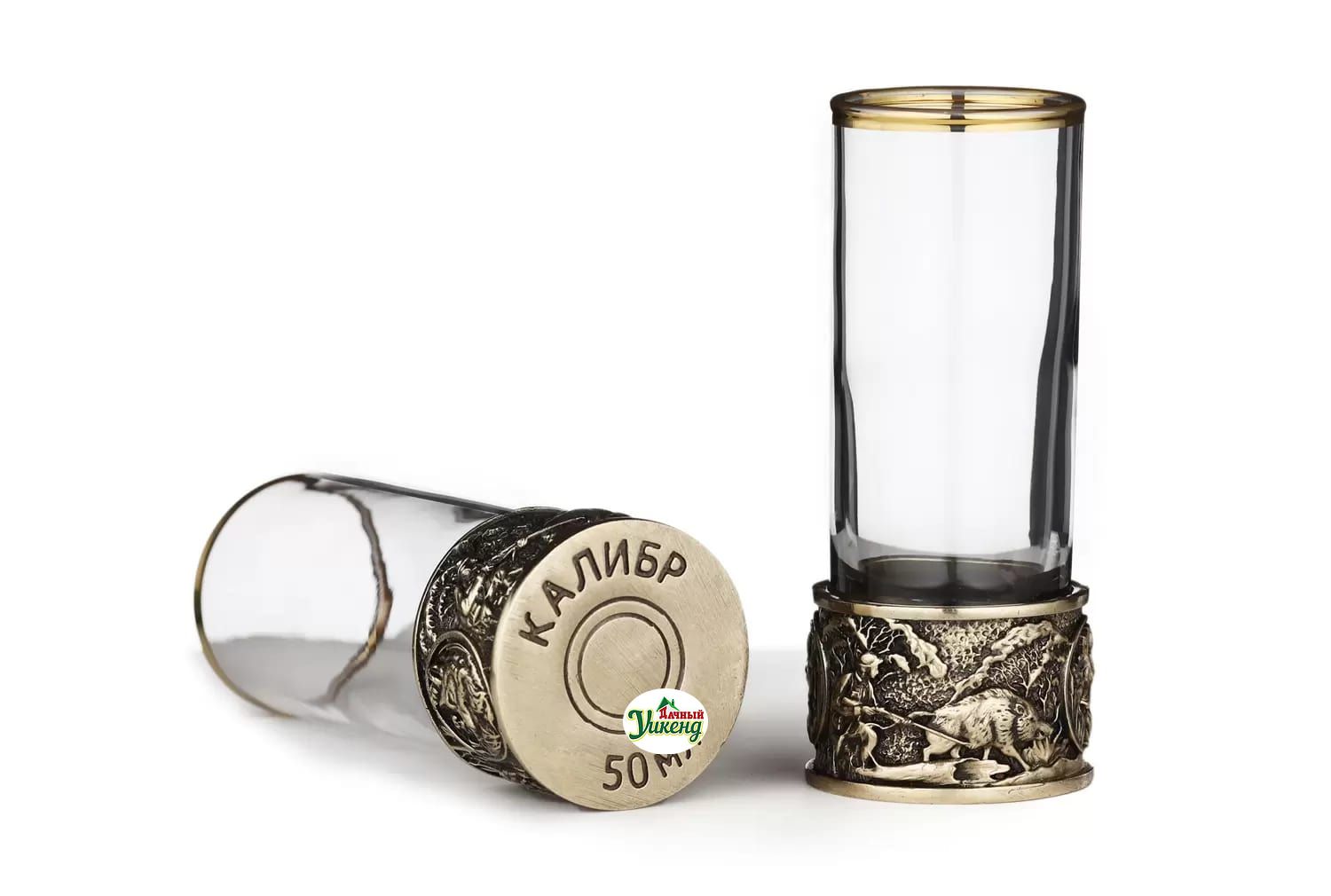 Стопки патрон «Охота» в количестве трех штук с оригинальным основанием в виде гильзы, выполненным из латуни методом художественного литья, отражают утонченность мастерства и страсть к охоте.