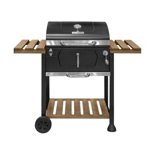 На гриле есть специальная ручка, позволяющая поднимать и опускать поддон с углями, а также заслонка, регулирующая подачу воздуха. Изменяя расстояние от углей до продуктов и силу потока воздуха, можно контролировать жар в гриле. А отслеживать температуру удобно на встроенном термометре.